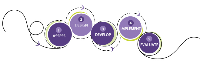 First, we help organisations assess their business needs and design practical solutions; then we develop, implement, integrate, and finally evaluate the learning solutions. |
